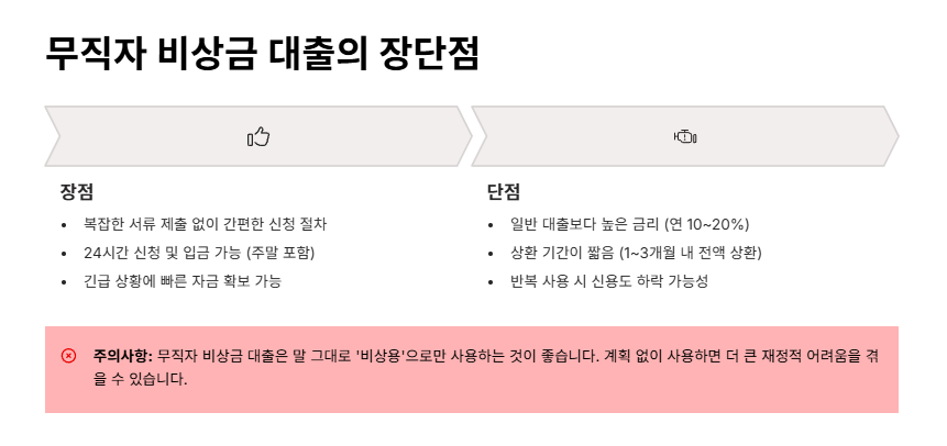 무직자비상금대출장단점 분석